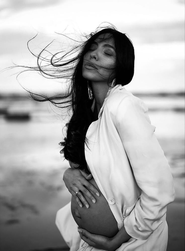 Черно-белая гамма помогает убрать лишние цветовые отвлечения, делая акцент на текстуре кожи, линиях тела, руках или животе. Это создает более глубокий эмоциональный отклик.